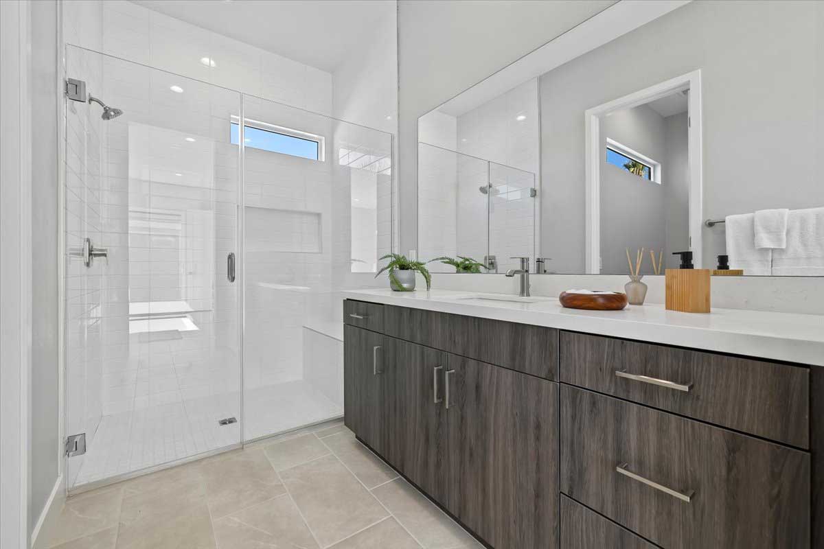 After consulting with Jeff, he took us to the "under development" Elements district to show us the Plan C model -which was perfect for our needs. The house had a perfect floorplan for us; two master suites, a lot large enough for a pool, 10' ceilings, huge windows and the house included solar panels and all of the major appliances (except washer/dryer). Even though we could only see the framing, windows and floorplan on that first visit, we knew we had found the right place. Two hours after touring the house we texted Jeff, returned the next day and made our deposit.
